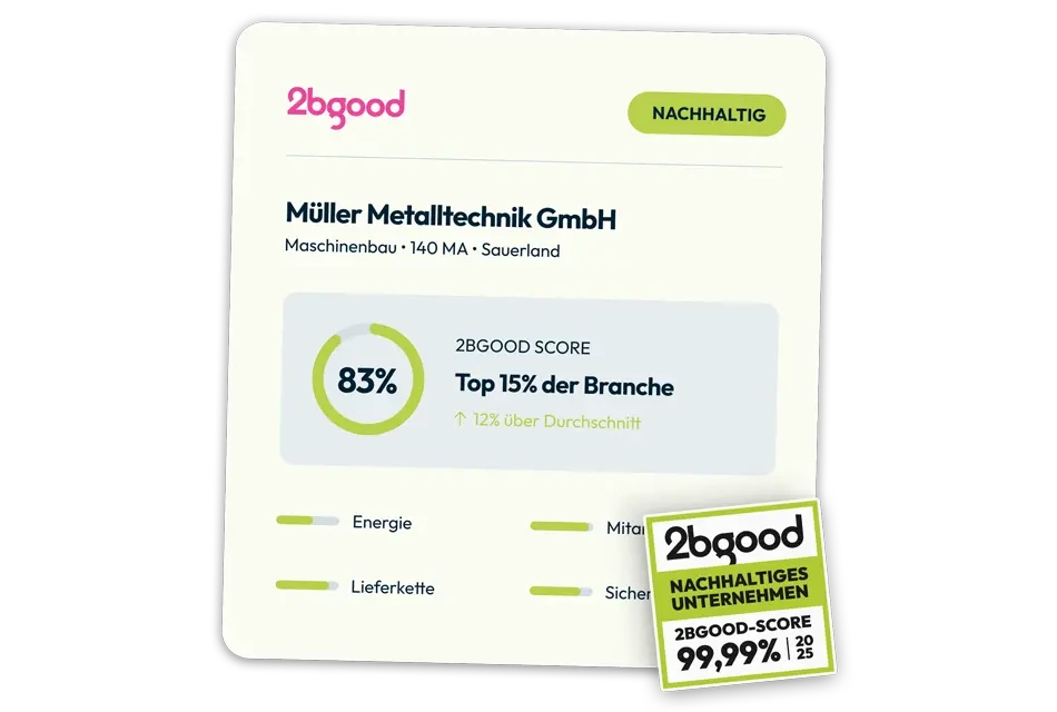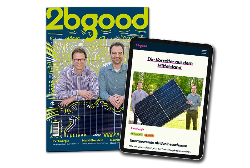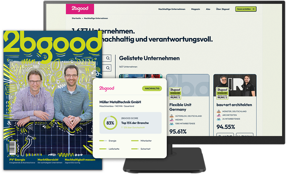 2bGood macht sichtbar, was der Mittelstand für Nachhaltigkeit tut. Mit einem Score, der misst — und einem Magazin, das zeigt.
